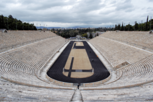 Am continuat turul orasului cu Stadionul Panathenaic (Kallimarmaro), situat in aproprierea Gradinilor Nationale. Drumul pana acolo a fost parcurs pe strada Irodou Attikou (pe langa Palatul Prezidential si gradinile acestuia – recomandam o plimbare pe aceasta strada). Acesta a fost construit în secolul al IV-lea I. H. si a fost folosit pentru a gazdui evenimente legate de sarbatorirea orasului Atena. Forma finala a fost capatata in secolul XIX-lea. Stadionul are cateva caracteristice unice in lume: este singurul stadion construit in intregime din marmura; aici a fost gazduita pentru prima oara Jocurile Olimpice moderne (in anul 1896), dupa care au urmat jocurile din 1906 si 2004; lungimea stadionului este de aproximativ 185 metri; acesta poate gazdui pana la 50000 spectatori. Din stadion, se poate vizita muzeul, accesul facandu-se prin tunelul catre fostele vestiare. In muzeu se regasesc, cel mai probabil, copii ale tortelor folosite la Jocurile Olimpice plus afisele oficiale alea acestora, pe langa alte informatii despre Jocurile Olimpice.