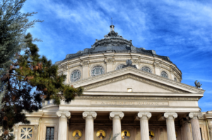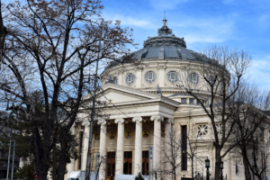 In drumul nostru, atentia ne-a fost indreptata spre Ateneul Roman, o cladire impresionanta realizata intr-o combinatie de stil neoclasic cu stil eclectic (construita dupa planurile arhitectului francez Albert Galleron), ce dateaza de 120 de ani (fiind construita intre anii 1886 si 1888).